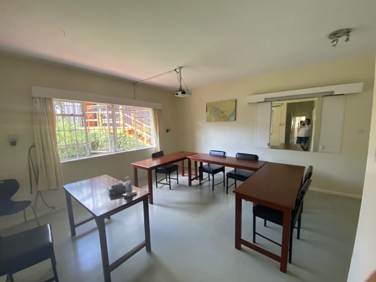 The AU Nairobi Center is on secure grounds with controlled access, a security guard, and a gated entrance. The Center offers students an opportunity to enjoy a lush, spacious backyard, a living room with board games and books that students can check out, and a lovely balcony that runs the length of the upper level of the Center. The set up allows students to feel “at home” in the Center with a full working kitchen in the Center and a supply of tea, coffee, and light refreshments often ready for students during the day.
