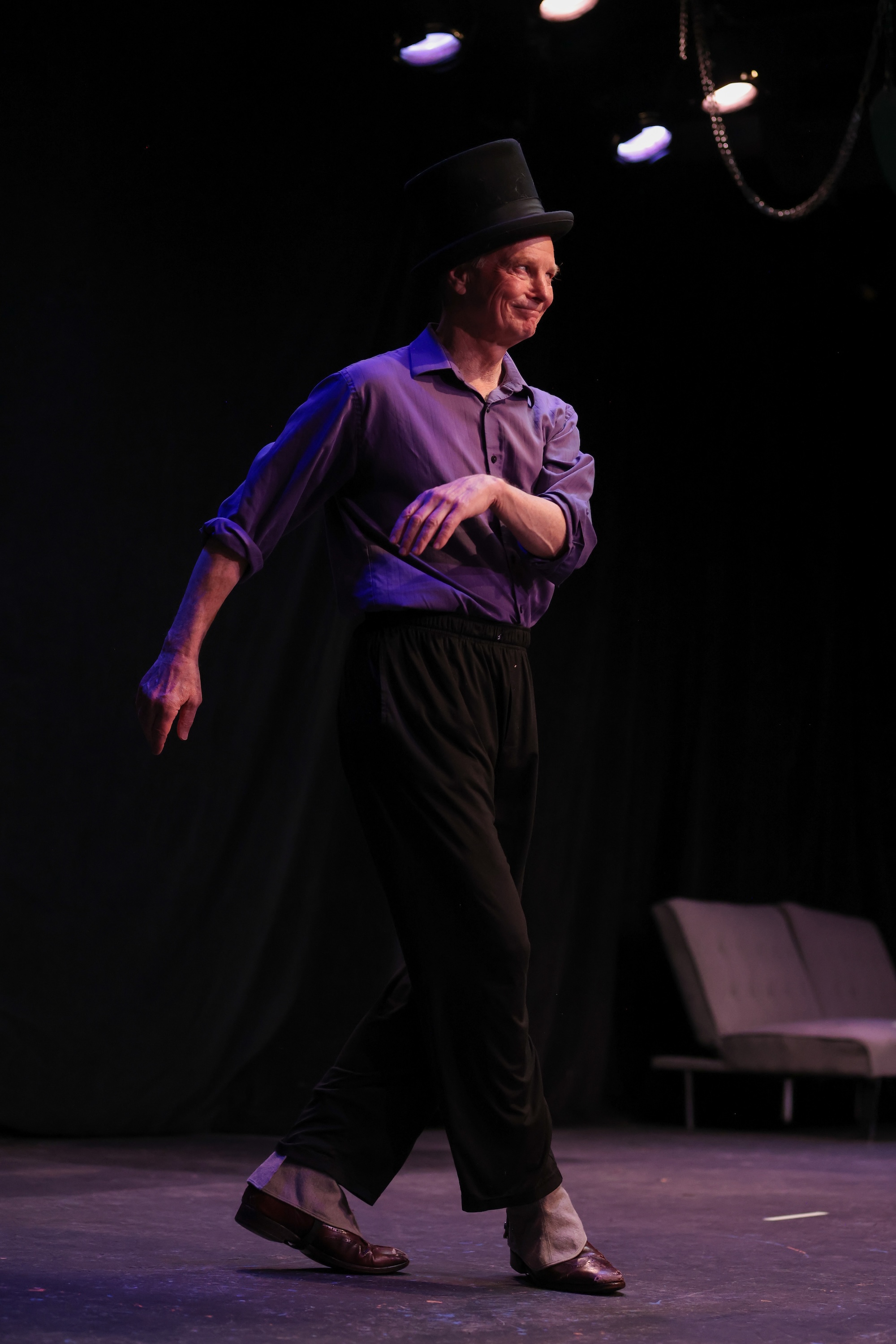 Before leaving to prepare for that evening’s performance of On Beckett, Irwin concluded the presentation with a brief showcase of his work, performing a tap dance while deftly flipping an oversized black felt hat. “I'm so grateful our students got to be in the room with an artist of Bill's caliber," says Professor Tara Giordano. "Clown invites us to stay in constant relationship with discovery, and Bill is still so alive in the search after more than 50 years. It's impossible to spend time with him and not leave hungry for the work.”
