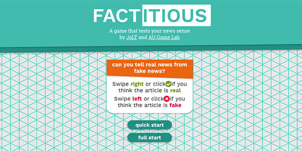 Studio Manager Bob Hone co-designed and produced Factitious, a game that challenges players to separate fact from fake in online news stories.