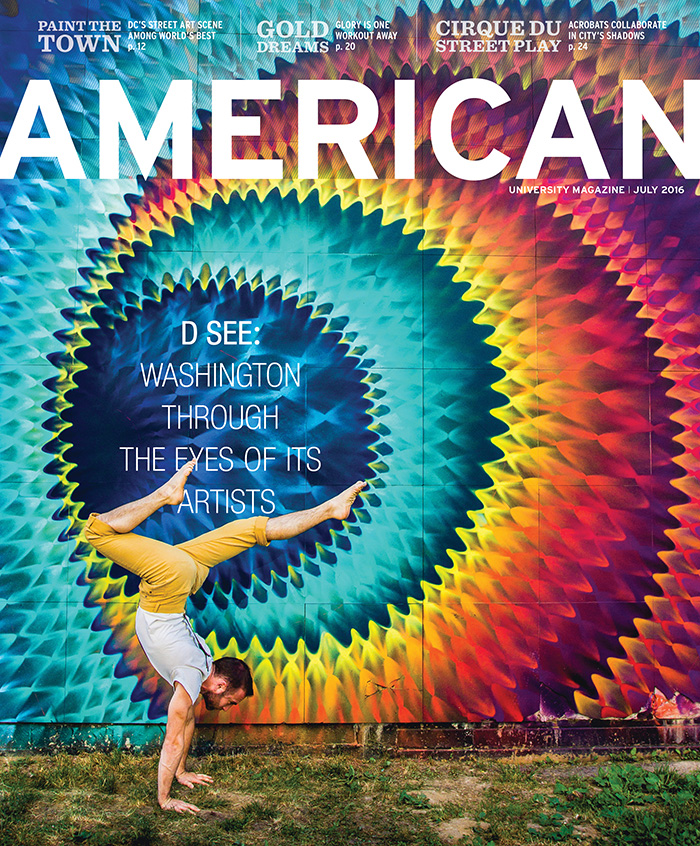 July 2016 cover of American magazine with a vibrant street mural