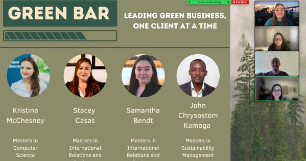 When the Green Bar team first met, they realized they shared an interest in sustainability and, as Samantha Bendt (MS Kogod/SIS ‘22) puts it, "how our world can go green." They narrowed their focus to small business, and in particular, something very specific to DC: the restaurant industry.